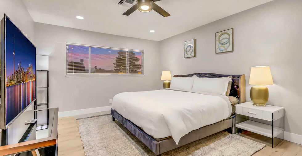 Welcome to Modern Oasis, a serene haven just minutes away from the bustling Las Vegas Strip. This newly renovated retreat offers the perfect blend of modern comforts and relaxation. With five bedrooms and the capacity to sleep ten, it's an ideal choice for families seeking a peaceful escape in a quiet neighborhood.